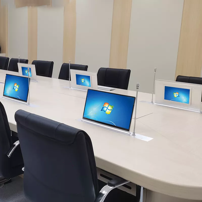 Guangzhou Junnan е професионален производител на повдигащи се екрани за конферентни маси в Китай и доставчик на повдигащи се екрани за конферентни маси в Китай. Екранът за повдигане на конферентната маса се използва главно в конферентна маса за старши ръководители, вградена високопроизводителна сензорна функция, конфигуриране на микрофона, конфигурационен заден екран, повдигане с един ключ, регулиране отпред и отзад, оборудван с функция против прищипване, безопасно и тревожно- безплатната, скрита вградена инсталация е много красива.