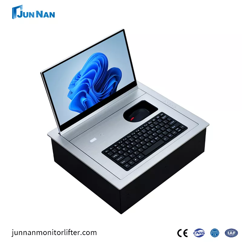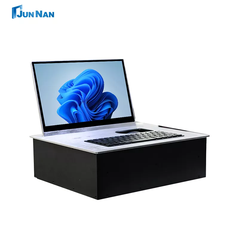 Guangzhou junnan е професионален производител на настолни терминали със скрито повдигане на LCD джапанки в Китай. Настолен Flip Display се използва главно в конферентна маса на старши ръководители, Desktop Flip Display вградена високопроизводителна сензорна функция, с функция за защита на захранването, LCD екранът ще се включи автоматично след обръщане нагоре и автоматично ще се изключи, когато се затвори и докосва крайния превключвател, за да намали загубата на мощност. Когато е затворен, той автоматично ще се изключи, когато докосне крайния превключвател, което намалява загубата на мощност. Може да бъде оборудван с микрофон, обръщане с един клавиш, регулиране отпред и отзад, с функция против прищипване, безопасно и безпроблемно, скритата вградена инсталация е много красива.