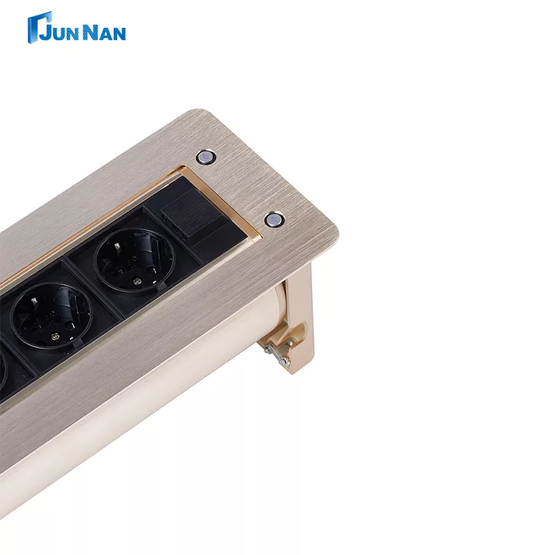 JUNNAN Hidden Desk Plug Up Socket Conference с вграден функционален панел Power Ba с едно докосване, множество открити жакове за лесен достъп до електричество, а контактът скрива работния плот, без да заема място. Нашите усъвършенствани контакти са най-новият тип контакти, лесни за поддръжка, могат да бъдат закупени на едро или персонализирани за клиенти. Нашите устройства Junnan имат много сертификати, като CCC, CE сертификат, ROHS, ISO сертификат и др. Нашите продукти са безопасни и високо качество, с квалификация за износ, фабрична директна продажба, изгодна цена, собствена фабрика и са в бизнеса от много години.