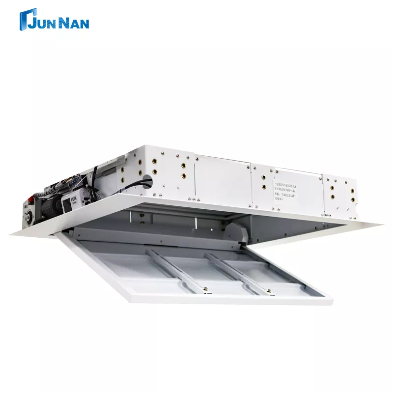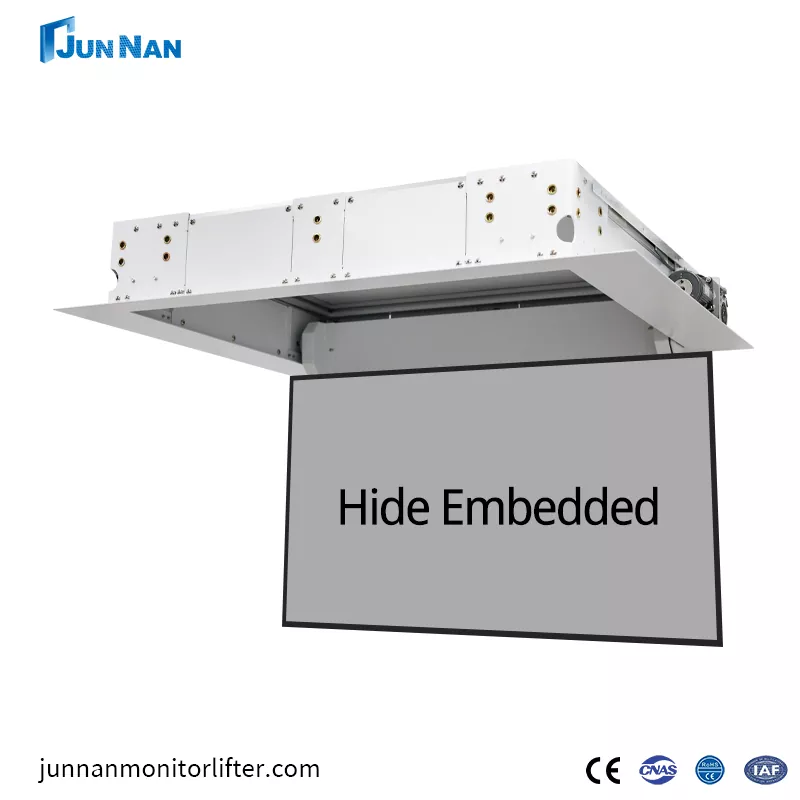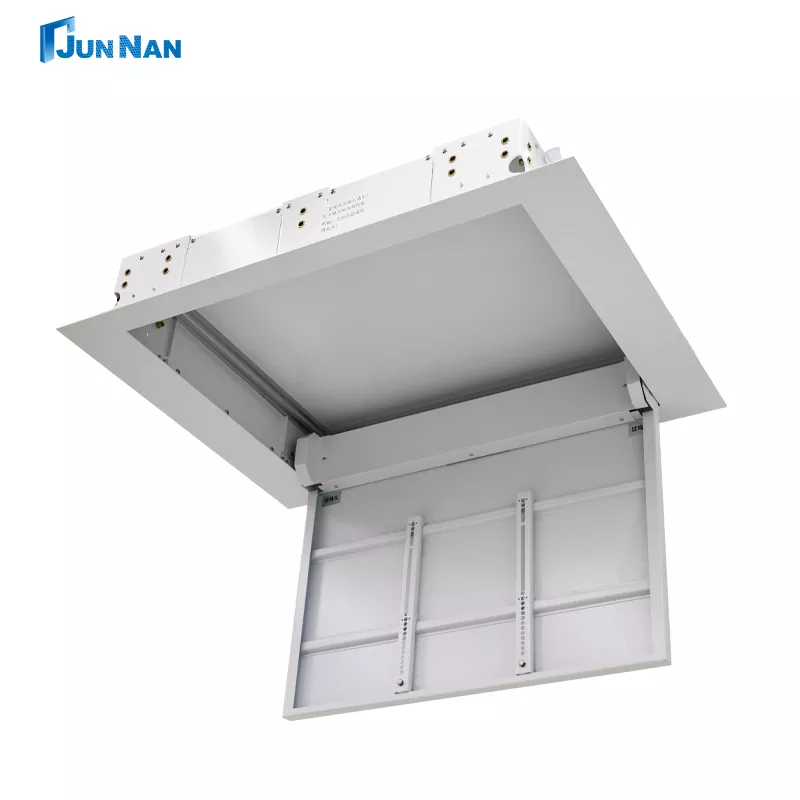 junnan TV таван флипер интелигентно позициониращо дистанционно управление/централно управление/ръчно управление, лесно и удобно за работа. повдигане и регулиранеВисока степен на свобода и контролируемост, разстоянието за повдигане и спускане на закачалката може да се регулира свободно. Стабилно управление на мотора, различни контроли и удобна работа Вграден нисък шум, стабилна и безшумна работа Скрит монтаж може да се скрие в стената, стилен, красив И спестяване на място.