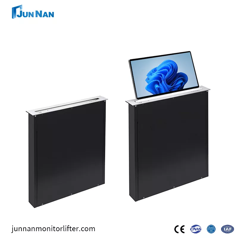 Усъвършенствана компютъризирана конферентна система за скрит ултратънък повдигащ се монитор е подходяща за всякакви сцени, най-новата конферентна маса Ultra Slim Lifting Monitor технология, за да се гарантира, че продуктът е с ултрависоки стандарти. Всички наши ултратънки повдигащи се монитори принадлежат към Произведени в Китай, налични за покупка на едро, могат да бъдат персонализирани за клиенти и разполагат с достатъчно ултратънки повдигащи се монитори на склад, поддържащи бърза доставка до клиентите. И нашето оборудване junnan има разнообразни сертификати за сертифициране като CCC, CE сертификат, ROHS, ISO сертификат, продуктът е безопасен и висококачествен, с квалификация за износ.