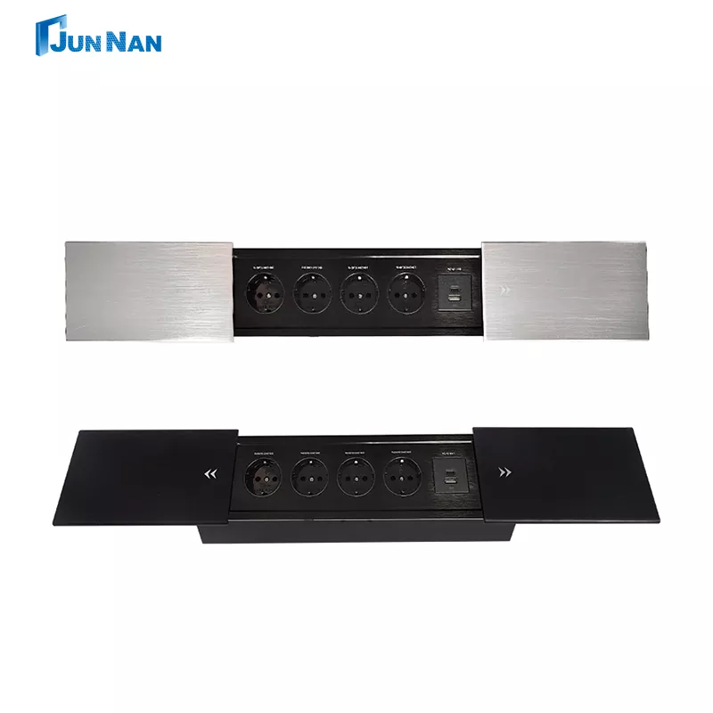 Guangzhou Junnan е компания от Китай, която е специализирана в производството на електрическо оборудване за електрически контакти. Захранващият контакт е място, в което може да се вмъкне едно или повече окабеляване на веригата, през което могат да се вкарат всички видове окабеляване, което улеснява свързването с други вериги. Изход за безжично зареждане изскачащ настолен контакт е продукт, който комбинира функция за безжично зареждане с изскачащ настолен контакт.