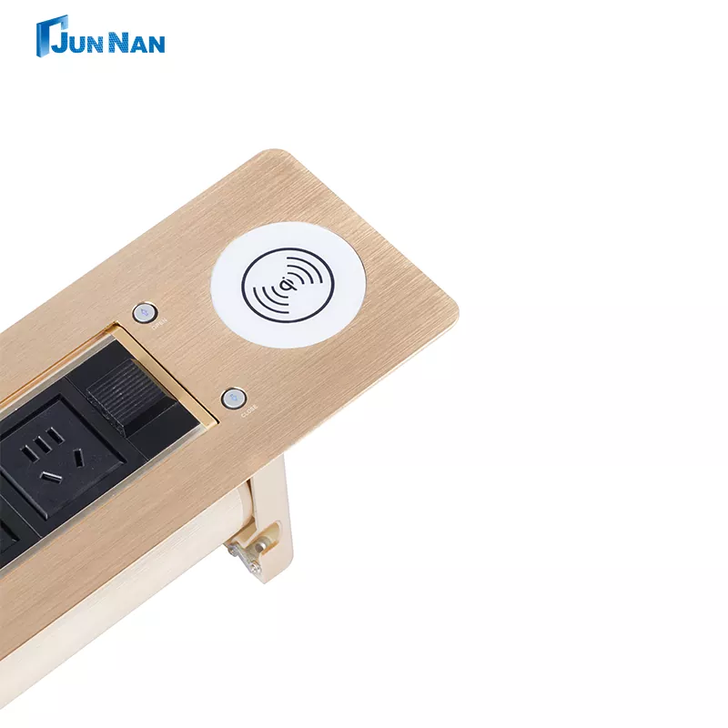 Guangzhou Junnan е професионален производител на моторизирано изскачащо безжично зарядно устройство за настолен превключвател с USB изход в Китай. Стилен USB контакт се използва главно в конферентен работен плот, потребителите могат да контролират обръщането на панела на контакта чрез натискане на бутона. Дизайнът на обръщащия се панел може да скрие дупките на гнездата и да поддържа работния плот чист и красив. Когато трябва да използвате контакта, просто натиснете бутона, панелът на контакта автоматично ще се завърти под правилния ъгъл, така че щепселът да се постави лесно.