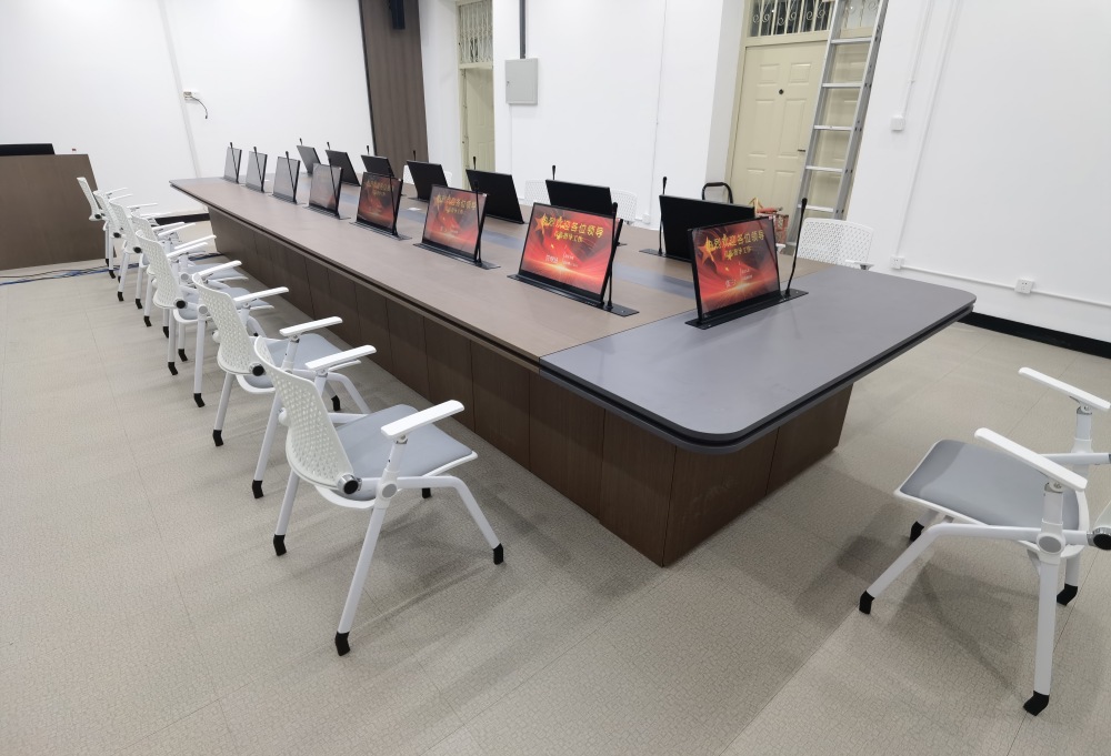 Нашата Guangzhou Junnan Audiovisual Technology Co., Ltd.Портината конферентна система може да се използва с асансьор на екрана с висока разделителна способност , моторизиран прибиращ се LCD монитор за повдигане с видео аудио за конферентна зала за срещи или система за гласуване на видео конференции. Полезен инструмент за работа и офис. Когато е необходим дисплей за среща, LCD екранният повдигач, скрит в таблицата на конференцията, може да повдигне дисплейния екран до работния плот чрез дистанционното управление. Автоматично се спускайте, когато не се използва, скрийте се обратно към конферентната маса, стабилна, красива и висококачествена.