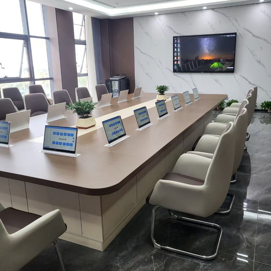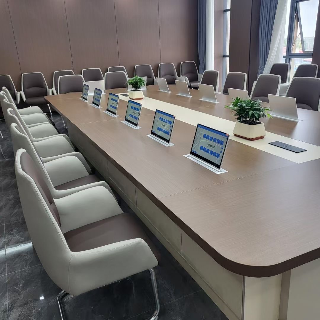 Нашата компания интегрира изследванията и разработките, производството и поддръжката на терминали за услуги без хартия, интелигентни електронни карти за маса, ултра тънкиLCD повдигачи на екрана, LCD екранни плавниции мултимедийни настолни гнезда. Той има висококачествен, високотехнологичен и високоефективен екип за технически и продажби, който да помогне на нашите клиенти да надграждат до без хартия, интелигентни и дигитални и да бъдат в крак с тенденцията на разработването на интелигентни офиси „Internet +“.