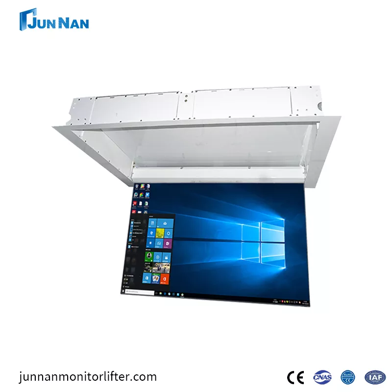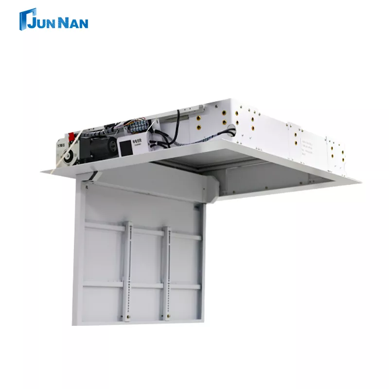 Guangzhou Junnan е професионален китайски производител на телескопична закачалка за дистанционно управление 32-70 инча за таван за телевизор. Стилен таван на телевизора се използва главно в големи заседателни зали, плавно повдигане на тавана на телевизора, гладко и красиво, безплатна настройка на повдигането, електрически асансьор, електрически асансьор с дистанционно управление. Интелигентно използване на различни методи за управление, лесна за инсталиране инсталация и стабилност; безопасна, здрава и безпроблемна, скритата вградена инсталация е много красива.
